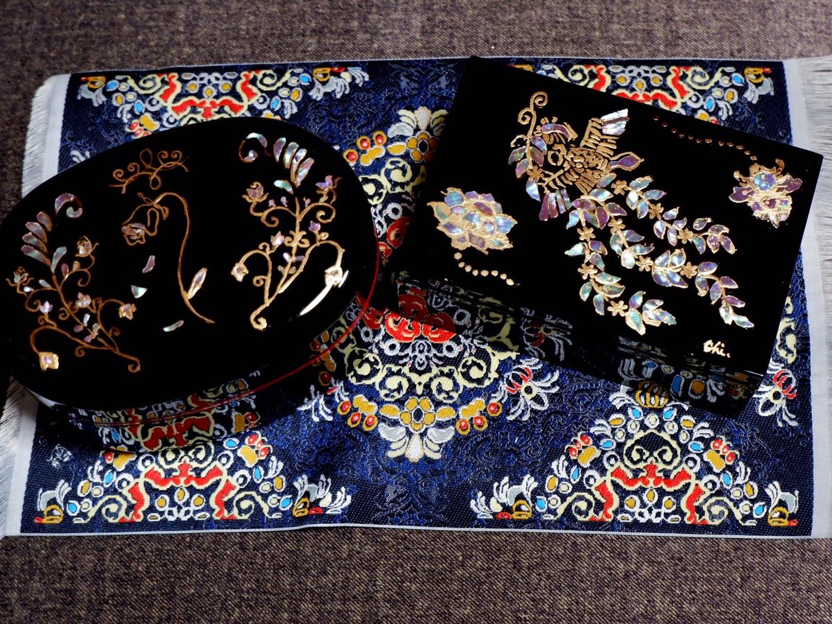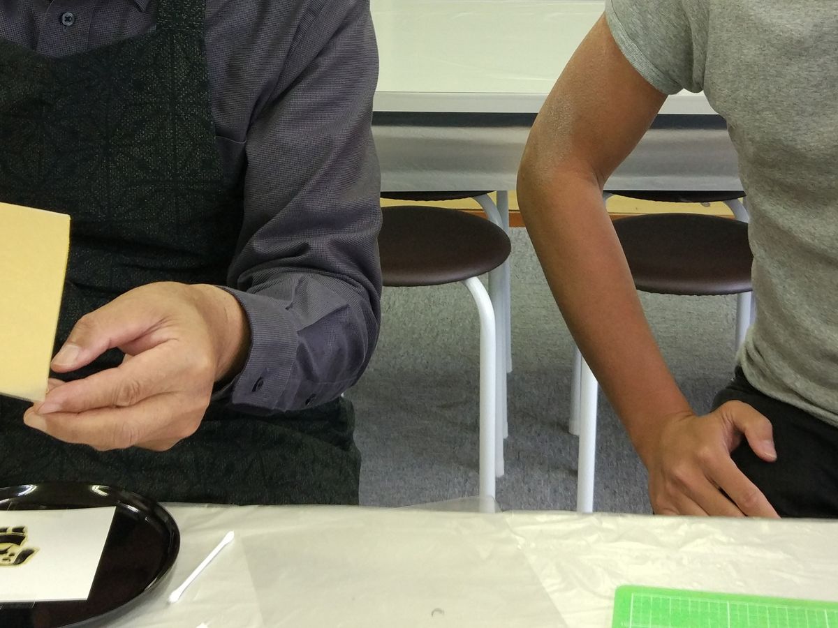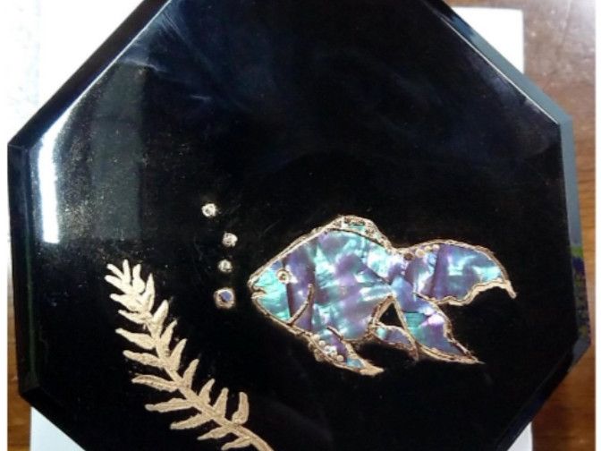 体験はお盆明けで、一人参加が他に一人居ただけで空いていたため、丁寧に教えて頂きました。金粉と螺鈿でピカピカに仕上がりました。よりオリジナルが作りたい方は自分で絵を持っていくとイイですよ。ただし細い線や細かい絵は無理です。螺鈿がとても薄くて割れやすいのでそれどころではありません(笑