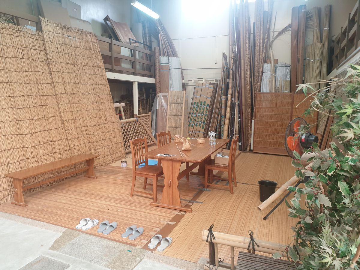 私たちは織物店に入り、先生が私たちをガレージ/作業場に案内してくれました。