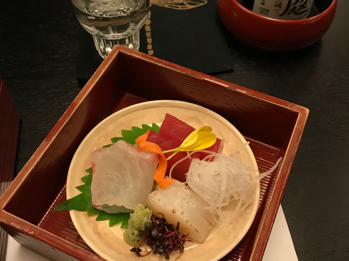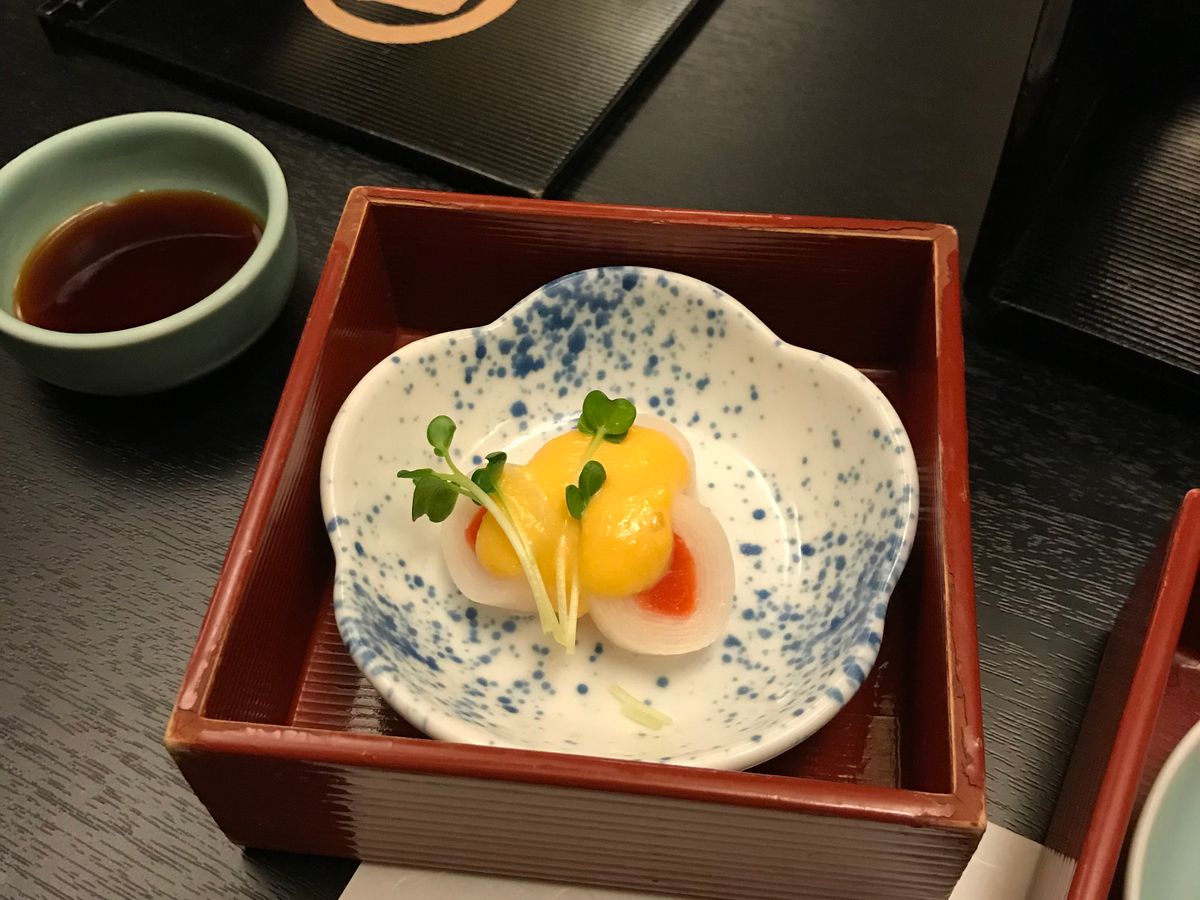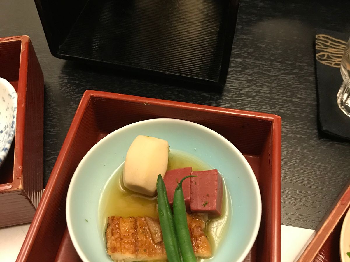 素敵な町屋で完全貸切状態での食事に、なりました。お料理を出すタイミングも、丁度良かったし、静かに食事ができました。どれも、洗練された味付けで、うーん、美味しい!の連発。大満足でした。三段の入れ物も、素敵でしたし、イチジクから始まって、さわらもすごく美味しかった。お味噌汁が赤だしで山椒が効いていて、素晴らしかった。