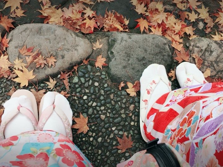 紅葉を見る目的で京都を訪れました。せっかくなので、お友達と念願の着物を〜と思い、参加しました^ ^。というか、旦那様を誘いましたが、断られました。笑 やはり、女同士で正解かな。笑 時間にお店へ〜場所はとっても分かりやすい!こちらにどうぞーということで、着物を選びました!もーすごく色々な種類があり、選びきれなーい!てな感じでしたが、直感で決めるわたしはすぐきまりましたが、お友達はなかなか決まらず…やっとこさ、きまりましたら、お店の方に着付けをして頂きました。さすがプロ!ちゃっちゃっと着させてくれました。帯もある程度の中から選べますが、もー何がいいか分からず、お店の方のオススメでお願いしました!着付けてくれている時も、かわいー!いーねー!かわいー!と一生分の可愛いを頂きました。笑