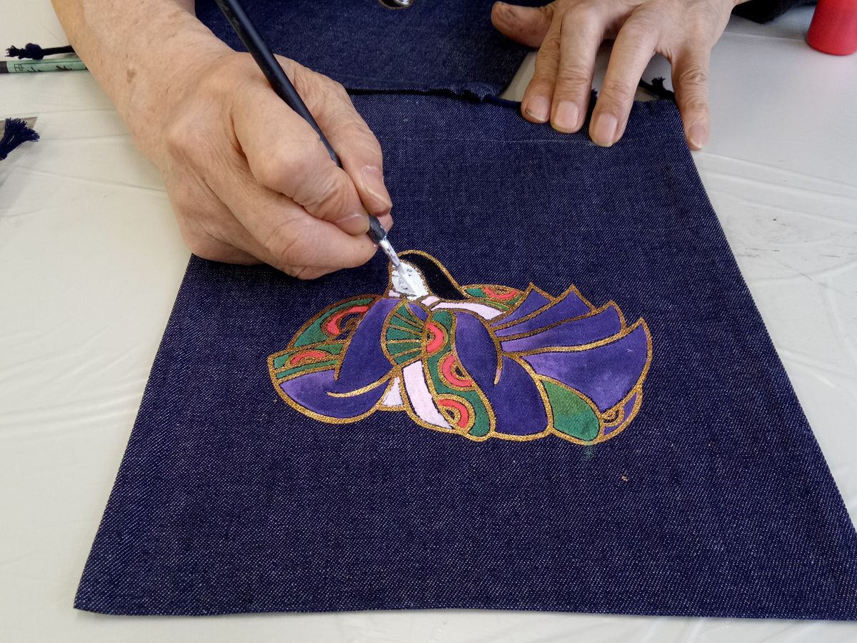 Saori Okabe was wonderful. Her English is perfect. I would recommend this class to any one interested in fabric painting. Very kid friendly. The craft center is very close to the Nishiki Market. Please check out the first pic as the buildings sign is not in English. I did mention this, they may have put up an English sign.