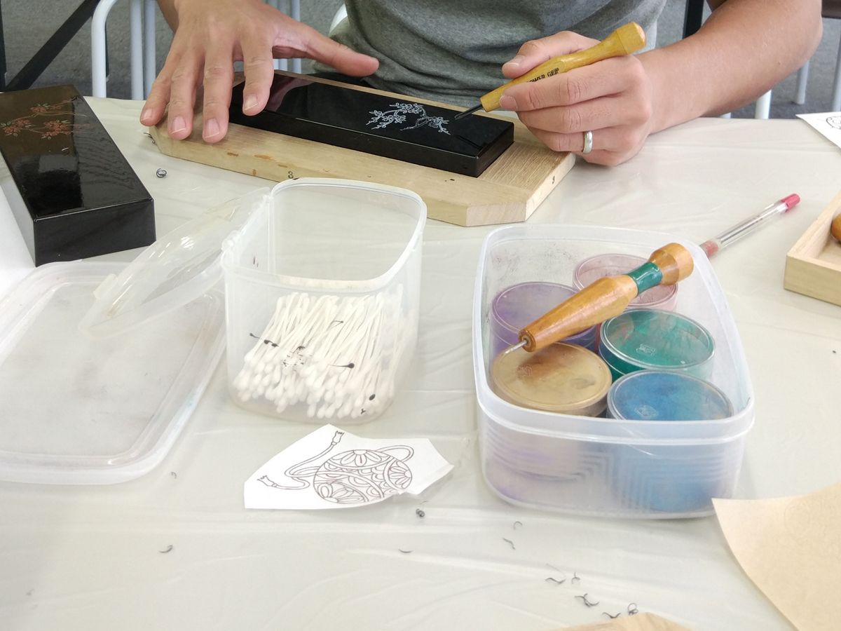 私はサガラデン・ノムラでラデンのクラスを受け、インヌイ・シッキでマキエのクラスを受けましたが、夫と私は京都アーティザンワークショップのチンキンのクラスが一番楽しかったと言わざるを得ません。先生方は高齢で日本語のみを話されましたが、先生のデモンストレーションに従うのに問題はありませんでした。京都アーティザンワークショップの特長は、木工から漆や金属粉の応用までの非常に実践的な体験であり、私たちが参加した他のワークショップでは、いくつかの工程がより専門的な手によって行われ、持ち帰るための素敵な製品ができるようになっていました。その結果、私たちは多くを学びました。このクラスを強くお勧めします。