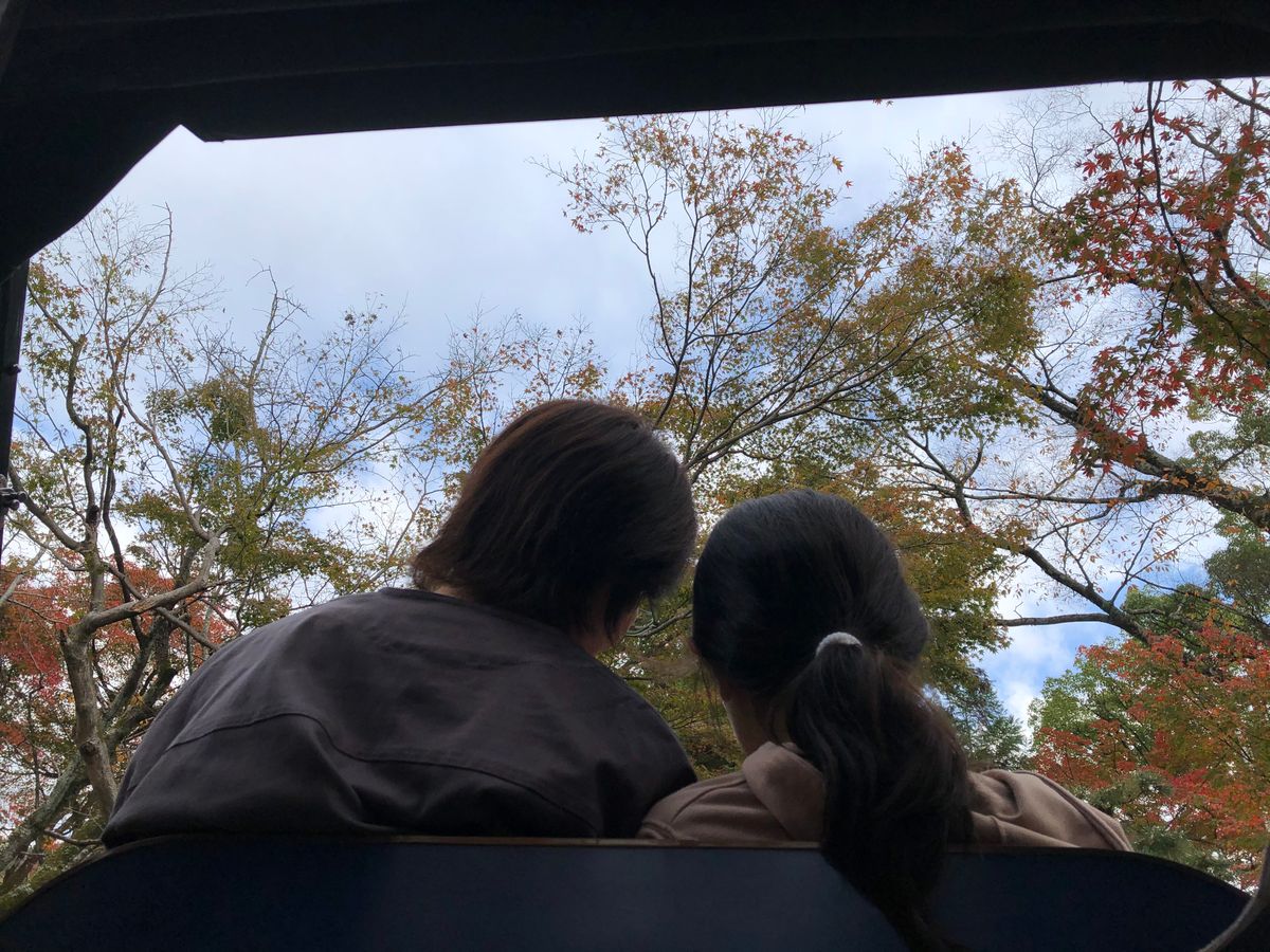 11月の連休中日は一年で一番忙しい日だそうで、ちょうどその日に乗りました。本当に道路も歩道も観光客でいっぱいでしたが、狭い所もニコニコ挨拶しながら上手にUターン!俥夫さんはとても礼儀正しく、また豊富な知識で楽しませて下さいました。30分のコースでしたが、ビックリするくらいあっという間でした。子供はもっと乗りたかった〜面白かった〜と喜んでいました。秋空の綺麗な日でしたが、俥夫さんはさすがに汗だくで、さぞかし真夏は大変だろうな…と思いました。また今度は浴衣や着物で乗りたいと思います。