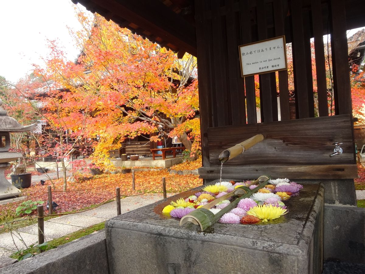 お寺の中の紅葉がとても綺麗で、そちらもインスタ映えするものでした。手洗いの所のお花など、細かい部分もかわいらしいお寺でした。