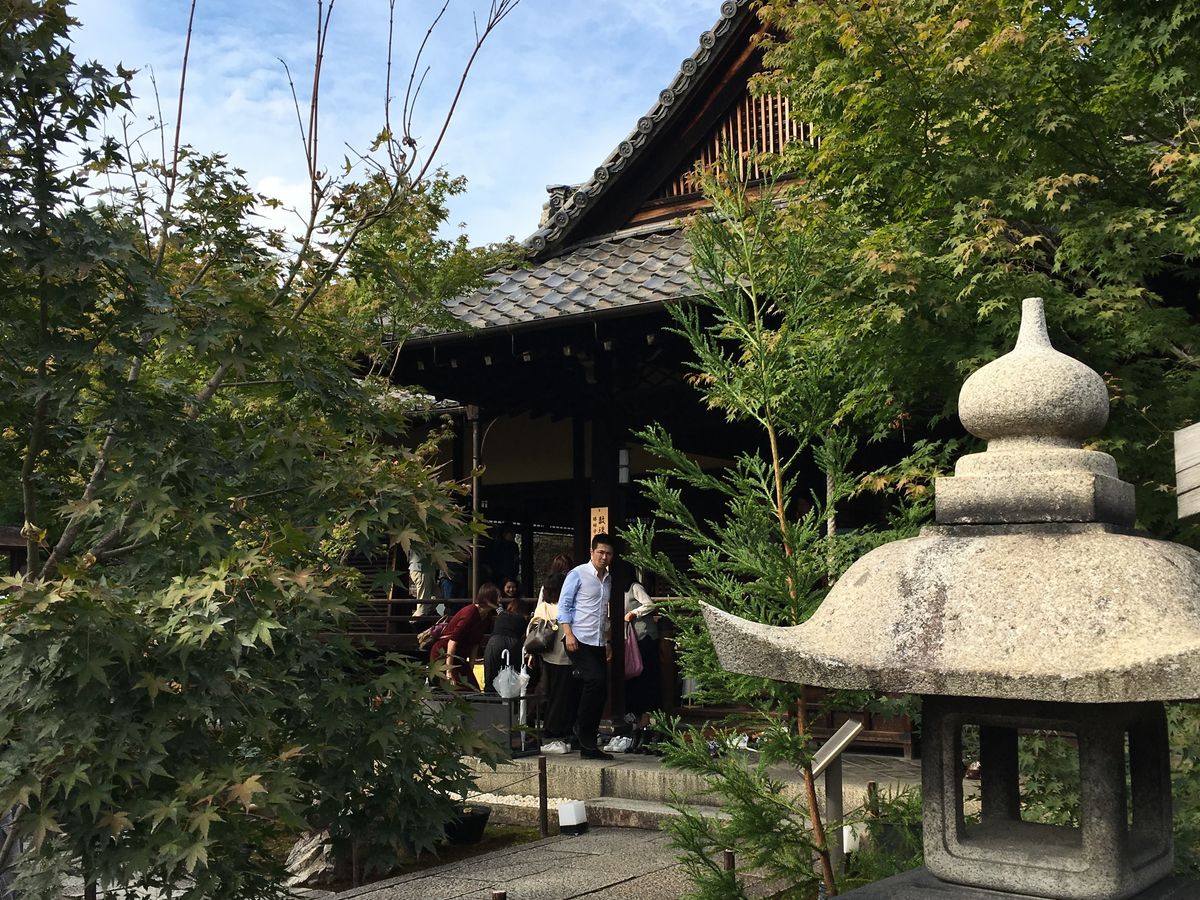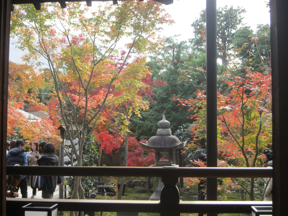紅葉見頃の真っ只中、人人人の東福寺への道を進む途中、ちょっとそれた脇道に入ると、そのお寺がありました。赤く色づいたもみじが風になびく、凛とした庭。こじんまりとした禅寺で、一般の拝観者もそれなりにいらっしゃいましたが、東福寺本殿に比べれば、ずっと静かに秋を感じられる場所でした。