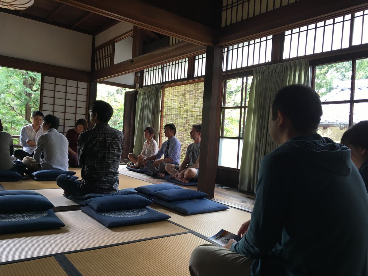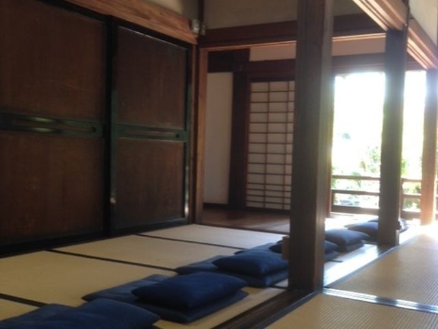 庭を眺める20畳ほどの部屋で、30人ぐらいの参加者が一緒に坐禅を体験します。