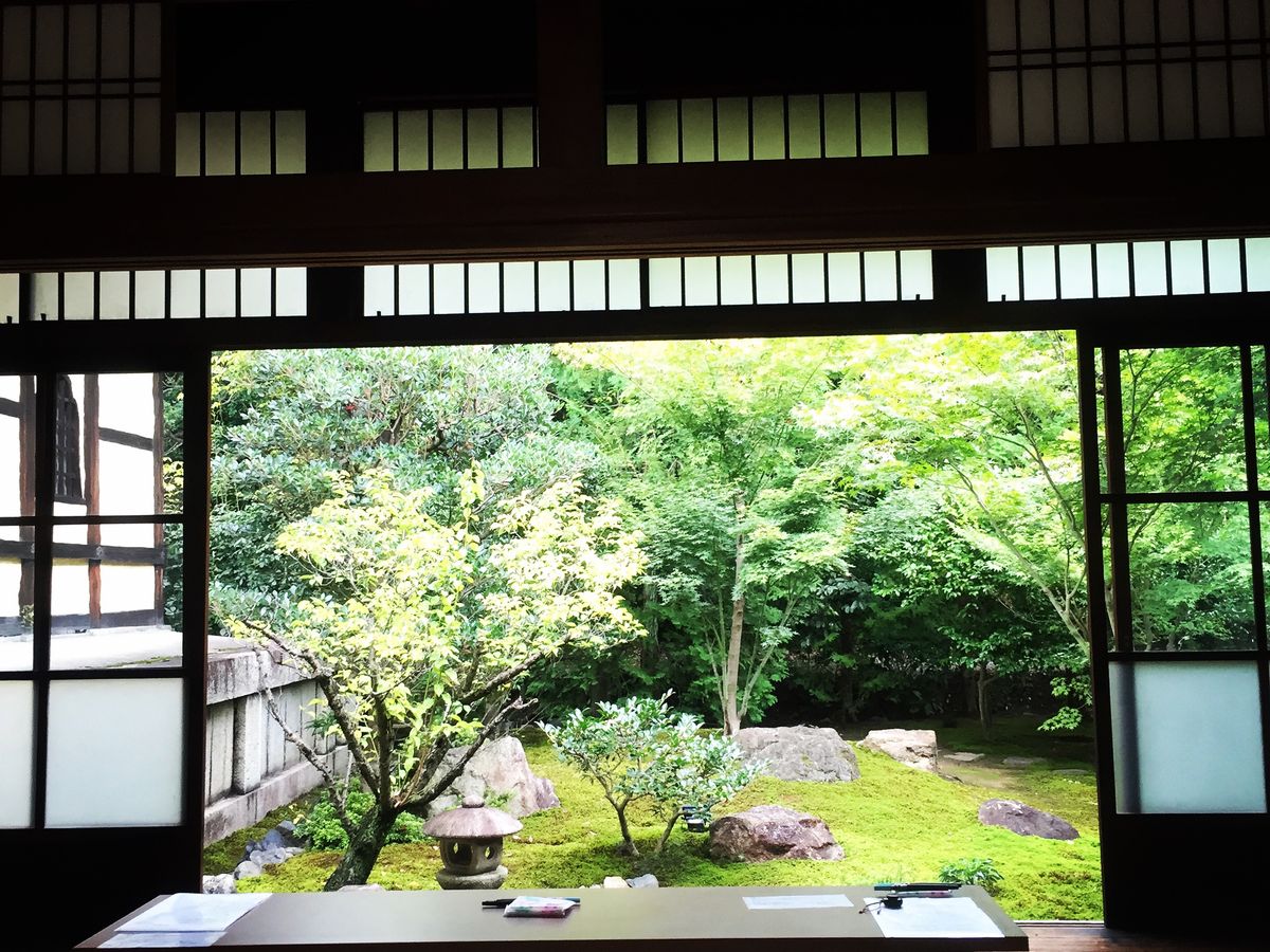 東福寺の塔頭の一つ、こじんまりとお寺でした。手入れの行き届いたお庭や本堂、低音の素敵なイケメン和尚さん、その和尚さんのお話にもついつい引き込まれるものがありました。お寺の由来や坐禅中の雑念の除き方等、いろいろと教えていただきました。最も良かったのが、季節がよく、周りの紅葉を見ながら、お話が伺えたことです。以前、鎌倉の円覚寺での座禅会では、大きな暗い坐禅堂に100人位で体験しましたので(まあこちらはこちらで趣があるのですが)、とても清々しい心持ちでした。人数もそれほど多くなく、少し早めに着いたのですが、その坐禅をする部屋で待たせていただき、静かなお寺の雰囲気を味わうことができました。オススメのお寺です。もちろん、お抹茶とお菓子も頂き、大満足。