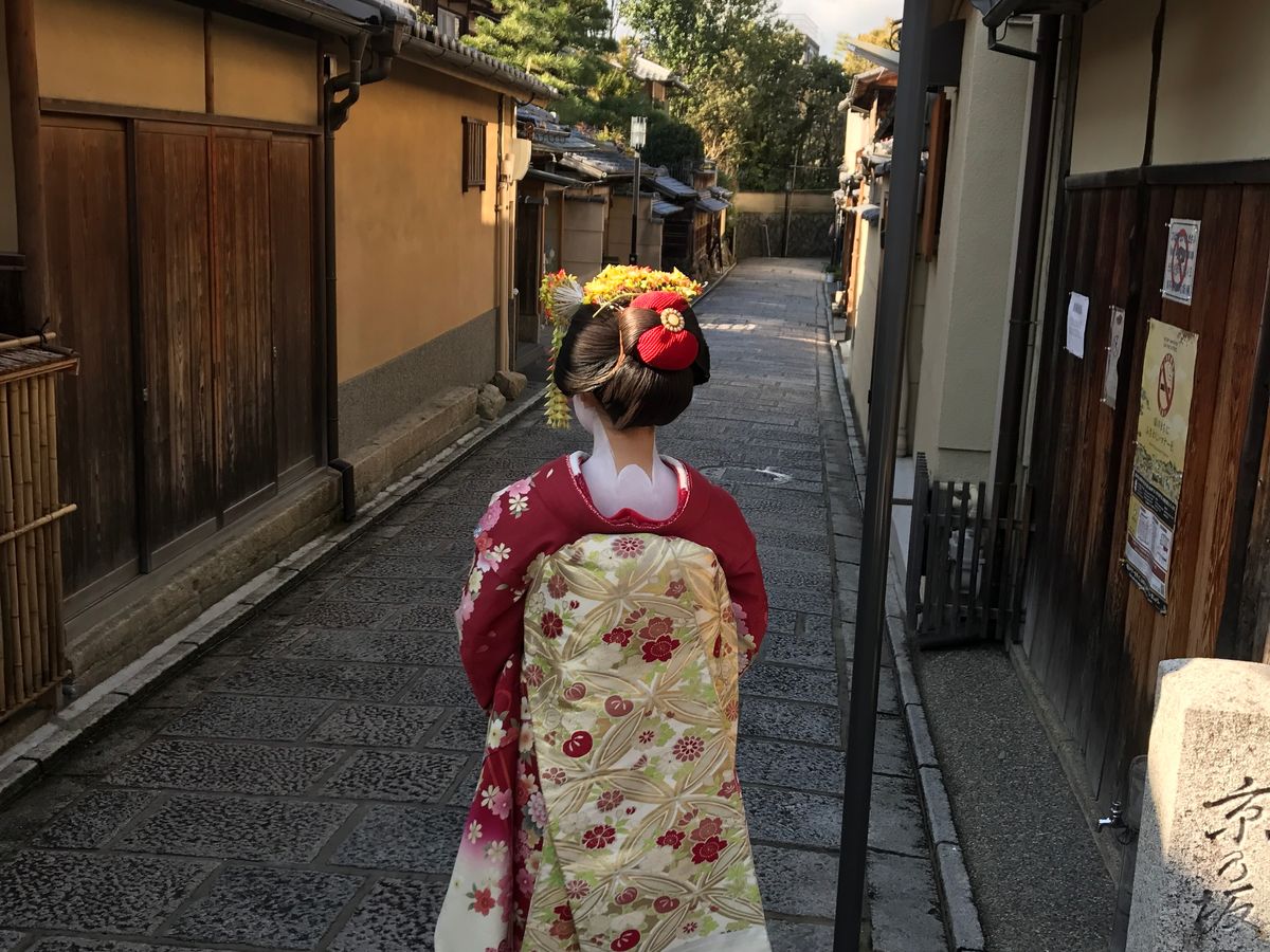 冬でしたが天候は晴れの日の京都で、舞妓散策プランを体験しました。