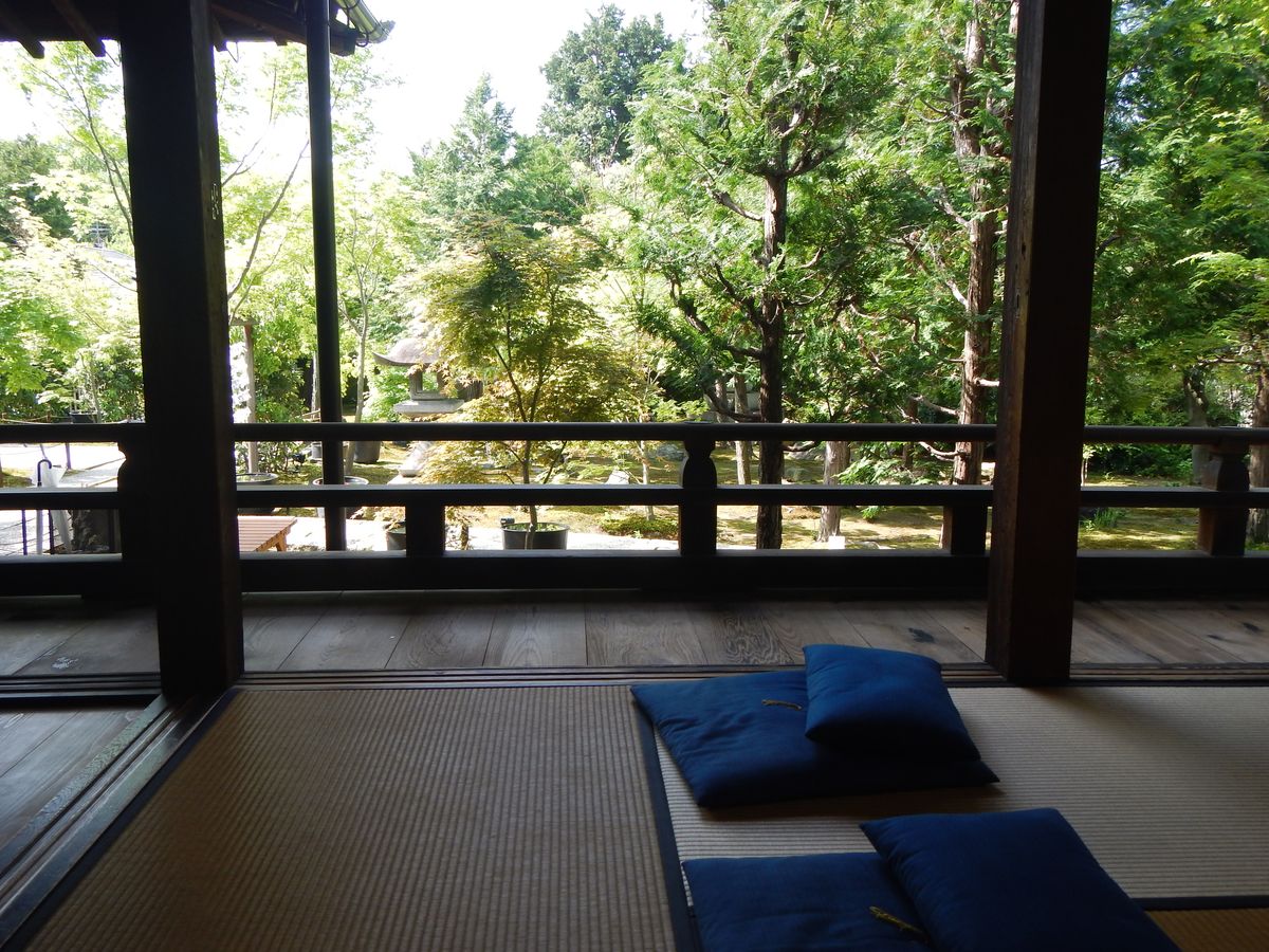 く遠く感じましたが、帰りはすぐでした。京都駅から一駅で快速?も普通もとまるのですごく行きやすいかったです。庭の緑のもみじがすごく綺麗で写真をいっぱい撮りました。お寺に入ったらすぐ座禅体験の場所で少しびっくりしました。受付を済ませるとどうぞとゆわれただけだったので、どうしようと思ったのですが雰囲気で好きな席なのかな?と思って開いてる席に座りました。しばらくするとお寺の説明、座禅の説明をしていただき座禅に入りました。15分間の座禅が二回とでちょうど良い時間だったと思います。緑溢れる場所で涼しい風が入りながらの座禅はすごく心が休まりました。座禅終わり、少しまたお話をしていただき座禅体験が終了しました。その後にオプションでつけたお抹茶をいただきました。お抹茶もお菓子も美味しかったです。堅苦しい雰囲気もなく、居心地もよかったのが素敵でした。東福寺も近いので帰りに寄って帰ることができました。