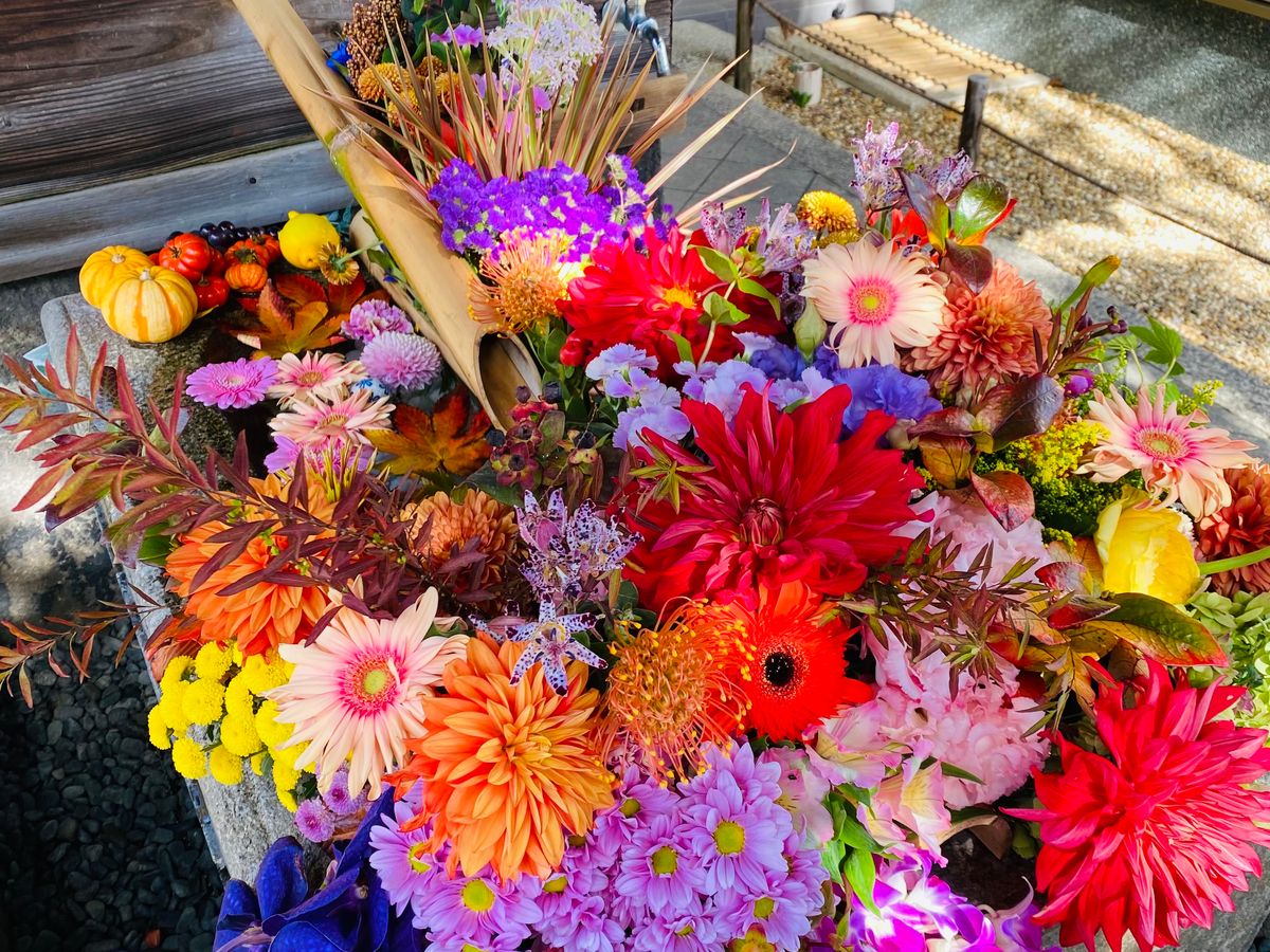 お寺の花手水も綺麗でした