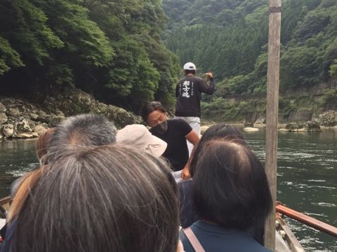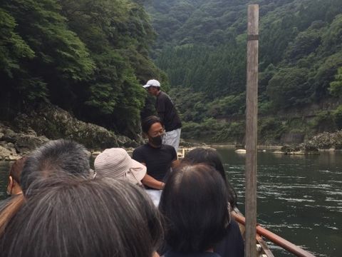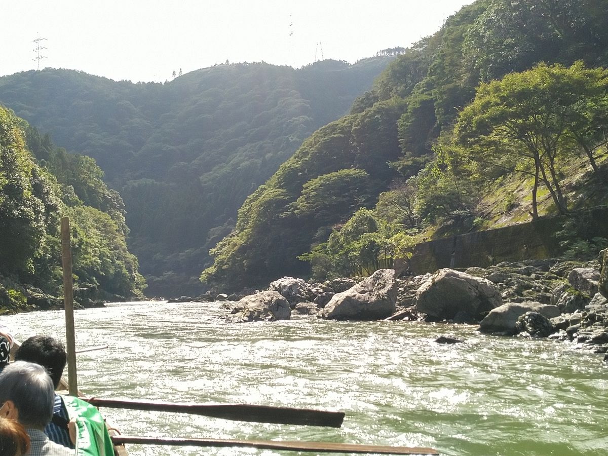 トロッコ列車から眺めた保津川の景色を、次は舟で間近に体感してくるツアーでした。1時間半を超える舟下りでしたが、イカシタ船頭さん達のお話と渓流を肌で感じながらアッいう間に終わりました。並ぶほど大人気なのも、うなづけます。
