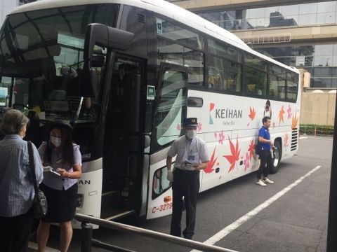 バスは満席なのですが、移動時間が短いので、そこまで気になりません。窓も開閉できたので、窓を開けさせてもらいました。機内の空気は5分に1回、入れ換えているそうです。