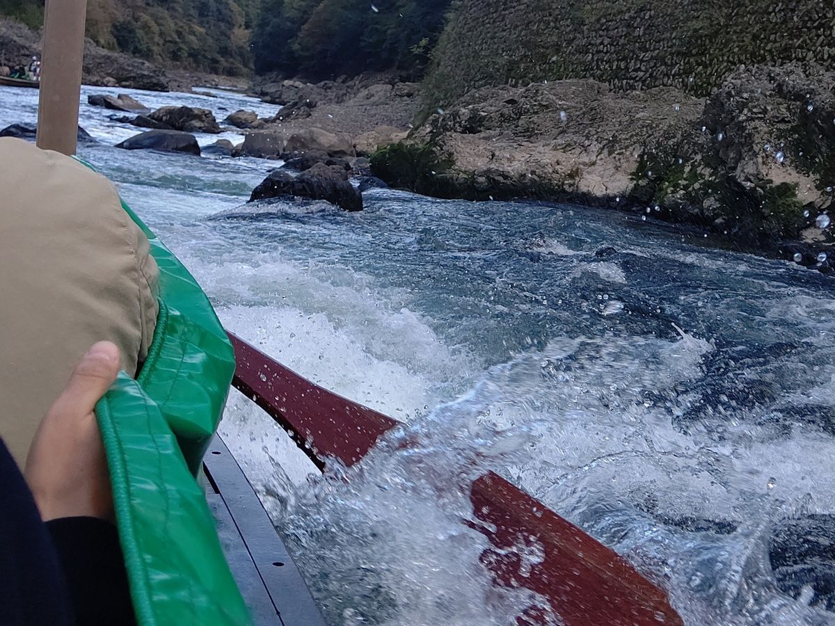 紅葉見ごろのこの時期、トロッコ列車も保津川下りも予約済みのためスムーズに並ばずに乗れてよかったです。船頭さんの会話もお客を面白おかしく笑わせる話で、全く退屈することなく、あっという間の2時間弱の川下りを楽しませていただきました。