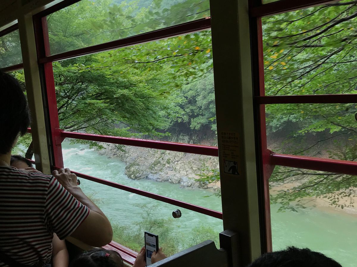 トロッコに乗って川下りされている方々見えていてワクワクいっぱいでしたが