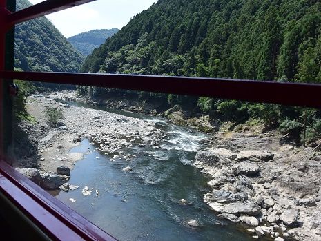 嵐山はトロッコ乗ると良いと聞き、参加しました。トロッコから見る渓谷は素晴らしく、また、時折自分たちも乗る川下りの船も覗けて次の準備的なものも出来、スムーズに船にも乗船ゆっくりたっぷり楽しめます^_^