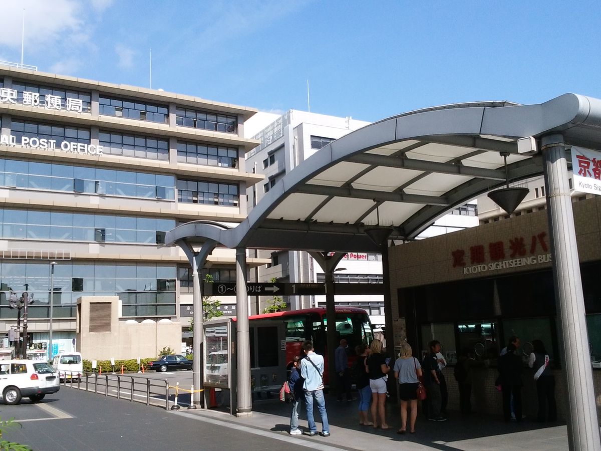 京都駅前烏丸口前集合と書いてありましたが、烏丸口というのがどこかわからず。駅前の観光ボランティアの方に聞いて、あたりを見渡すと京都定期観光バスののぼりのようなものが見えたので、間違いなく集合できました。