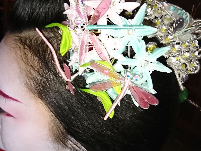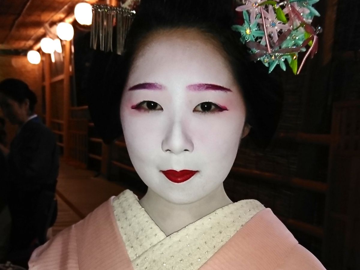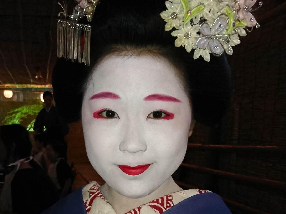 聞いたところ5つある川床のうち4つ入客あった様で舞妓さんも、上七軒から梅たえさん・ふみ幸さん 宮川町から菊弥江さん・叶季(かなすえ)さんの4名が来てくれてました。(時間の都合でふみ幸さんとはお目にかかれませんでしたが・・・悲)