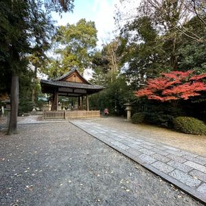 参道は細かな玉砂利が敷き詰めてあり、ベビーカーやキャスター付きバッグは、苦労します。参道の半分位から、ベビーカーと車椅子は迂回の標識が有り道の脇の方が石が敷き詰めてあります。でも、けして進みやすい訳では無いです。池の周りを回って行くルートは、まず、階段があります。