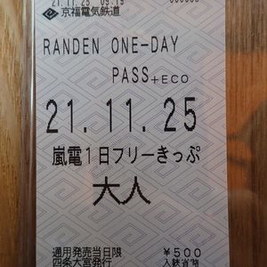 嵐電は1回の利用で220円なので、3回以上利用すれば元が取れます。