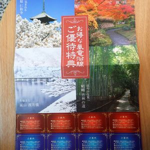 とても値打ちのあるお得な切符です!嵐電乗車前の午前中、苔寺滞在に時間をゆっくり使ってしまった為、午後から思った以上周ること出来なかったのが残念でした。次回も必ず利用して朝から巡りたいと思ってます。