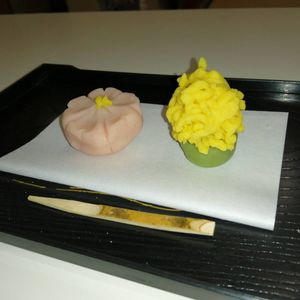 お越しいただきありがとうございました。こちらで作っていただいた和菓子と共にお花見を楽しまれたのですね!今月は桜とタンポポを作成いただきましたが、季節によって形を変えておりますので、また是非、ご参加をお待ちしております。