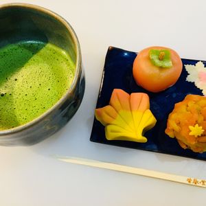 大人4人で参加しましたが、1つのテーブルを割り当ててもらい、気を遣うことなく体験出来ました。ほかは2人で参加された方が多く、長机に向かい合わせで座っていました。4種類の和菓子を一つ一つ見本を作りながら見せてくれるので、慣れないながらも作れて楽しかったです。プロが作ったものはさすがの形と色合い!最後は抹茶と一緒に1つをいただけるので、食べて満足、作って満足でした。同じ材料、作り方なのに人それぞれ違いが出て面白いです。