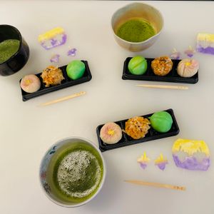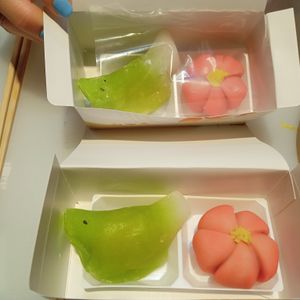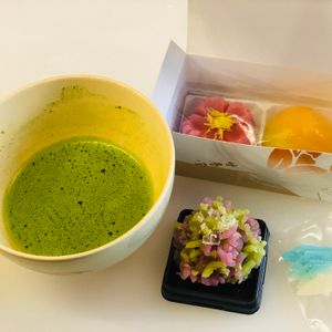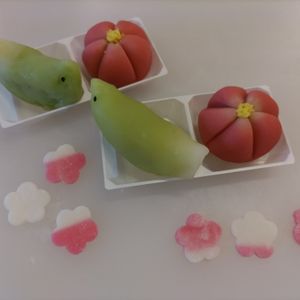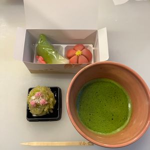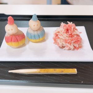 とてもドキドキ ワクワクで教室に入り職人さんの優しく丁寧な説明で、不器用なわたしですが生菓子3千菓子1作り緊張感から解放されお抹茶いただきホッコリしました ありがとうございます