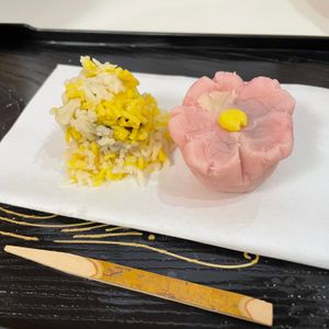 コロナ禍の中での体験ということで、道具や机、椅子の消毒はもちろん、間隔を空けた配置で、安心して体験ができました。和菓子は季節により変わるそうで、今回は桜とタンポポをつくりました。どちらも簡単そうに見えて、実際作ってみると、和菓子職人さんの凄さが痛いほど感じられました。しかし、不恰好でも、自分で作った和菓子はなんだかとても愛らしかったです!和菓子を作った後はお点前体験で、初めにやり方を教えていただけて、経験のない私たちもすんなりと抹茶を点てることができました。最後に和菓子と一緒にお抹茶をいただけます。餡や抹茶も良いものを使ってるそうで、目を閉じればお店の味でした。難しすぎる工程もなく、美味しいものも食べることができるので、小さい子供はもちろん、年齢を問わず楽しめる体験だと感じました!ありがとうございました!