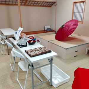 手際良く、時間内で体験できました。用意された材料だけでなく工程に合わせて各自に配られるお菓子の材料や道具類は段取良く手際が良いです。お店の方の説明もわかりやすく楽しいです。お抹茶は作業した席での飲食になる為雰囲気が出ないのが残念でした。