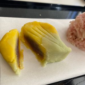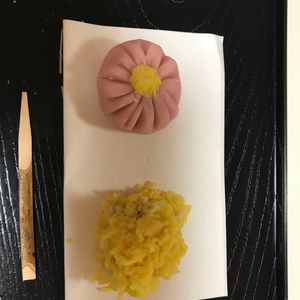 娘の希望で、81歳の母、私、23歳の娘の親子三代で体験させていただきました。和菓子作りは、思ったより難しかったですが、とても楽しかったです。形を作るのに苦戦しましたが、何度もやり直しながら楽しみました。ただ、桜はともかくコスモスは秋の花なんじゃないかなと疑問に思いました。