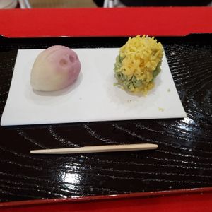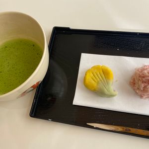 京都に住んでいますが、以前から和菓子作りを体験したいと思っていました。こちらで手ごろな値段で体験できることを知り、娘と二人で申し込みをしました。簡単にできるかと思っていましたが、手袋をつけての細かい作業はなかなか難しかったです。インストラクターの方が丁寧に教えて下さったので、30分と短い時間でしたが、逆に集中して作業ができてよかったです。鶯と梅という春らしいお菓子でした。特に鶯が難しく魚のような形になってしまいましたが、どちらもとてもおいしかったです。楽しい体験をありがとうございました。
