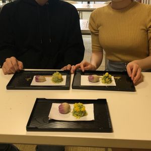 私たちは3月にこの和菓子作り体験に参加させて頂きました。京都にはよく訪れていたものの、和菓子を自分で作ったことがないことに気付いたから、そして和菓子好きの母に送ろうと思ったからです。サイトで30分と書かれていたので、結構急がないといけないかと思っていましたが、そんなことはなく、手際の悪い私を待って頂けました。彼との楽しい時間を過ごすができ、また、持ち帰って母にとても美味しいといってもらえて本当にかけがいのない思い出になりました。ありがとうございました。
