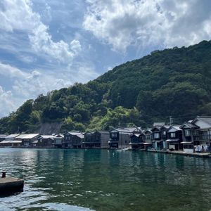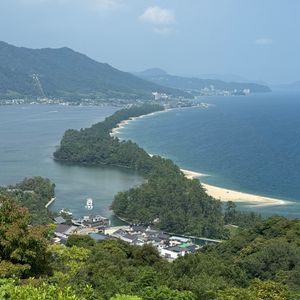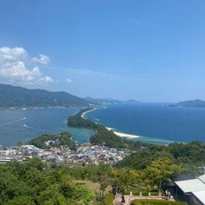 伊根まで約3時間、フェリーに乗って舟屋群を見る。とてもお天気の良い日で波もなくとても綺麗だった。100円で餌を買って鳩にあげてもいいらしく、餌目的かずっと沢山の鳩がフェリーの周りを飛んでいる。海岸沿いにも人はいなくて、鳩が沢山いた。その後約30分で天橋立に。一人ずつリフトに乗って頂上に。お天気がいいのでとても綺麗に景色が見れた。もちろん股覗きも。頂上には懐かしい乗り物があって楽しむ。頂上から降りる時は絶景を楽しみながらで驚き!素晴らしい。お土産屋などを散策して、海岸沿いを歩いて、カフェでランチして十分な時間がありました。とても良いツアーでした。ただし私達以外はなんと中国の方ばかり。ガイドさんも中国の方。私達はバスでは一番前のいい席と決まっていて有り難く私達に初めに日本語で簡単に説明した後に中国語で沢山、長く説明があった。ガイドさんが感じの良い、ずっとニコニコしてとても良い方だったので、嫌な思いをする事が全くなく気分よく過ごせました。