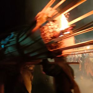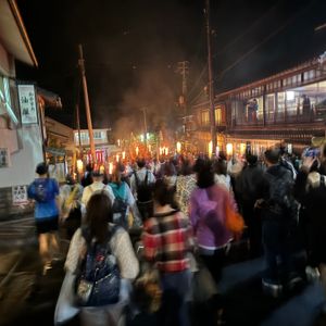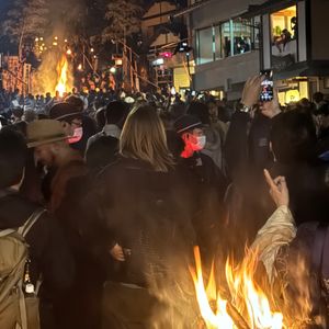 個人で鞍馬の由岐神社に行くのがとても大変そうだったので、こちらのツアーに参加しました。参加するまでは火祭りの詳細をよくわかっていなかったのですが、鞍馬の火祭りといえば「チョッペンの儀」がハイライトなんですね。このツアーではチョッペンの儀をみにいくのが目的ではなく、その後のクライマックス見学が目的です。私たちが到着した時は、チョッペンの儀もまだ終わってなくてみれましたが、群衆がすさまじく前に進む隙間が一切ないような様子で遠くから眺められただけでした。ただ、その後、観光客はいっきに帰途につくので、クライマックスはかなりの少人数の状態で見れて大満足です。私がたまたま立っていたところは、舞台となるステージにも近く迫力大満点でした。(でもそのあたりぐるぐる好きなところを移動できます)