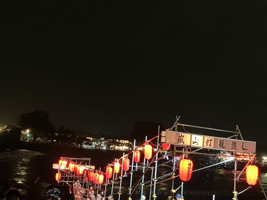 嵐山についても雨。残念ながら送り火は、皆さんの傘に隠れて見えにくく写真は撮れませんでした。