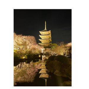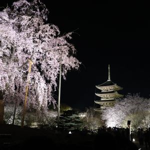 東寺は、いつも京都駅から見えているのに、なかなか行く機会がなかったのですが、桜満開の一番良い季節に行くことができて、ライトアップもまた素晴らしかったです。
