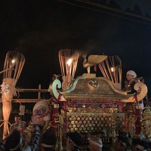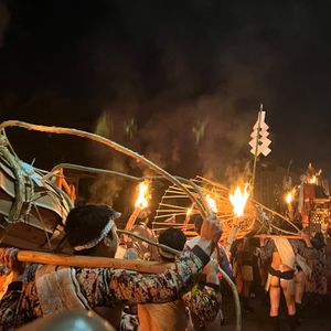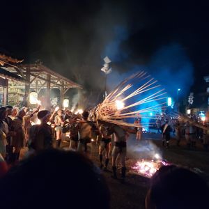 不思議な世界を体験。祭の最後まで見られて面白かった。今でも祭の掛け声が耳に残る。老若男女全てが揃う。街の入り口の篝火は静かに祭に誘うが、祭そのものは雄壮