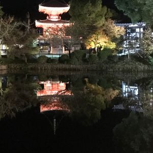 紅葉にはまだ早く、ライトアップしてありますが、ただの木を照らしているように見えます。