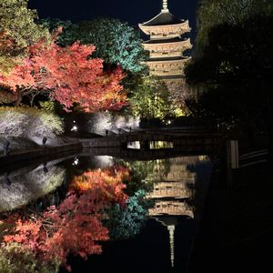 知恩院は本堂から空に向かうレーザー光線がすごくカッコ良くて、東寺は水面に映る五重塔や植栽がとても綺麗でした。