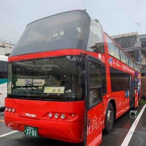オープントップバスと言う事で天候が心配でした。案の定、当日は乗車した頃から雨…☂️ 心配的中アテンダントさんは気を遣って頂き、前方の雨が凌げる8席に移動を促していただく。しかし、全員がそのエリアに行けない事はツアーのお客様も認識済み。ここは年功序列と暗黙の了解。我々は中年カップルなので自粛。しかし、乗車時に貰ったポンチョが大活躍♪意外にも服は濡れない!ポンチョって凄いを体感しました。バスが走ってる際は顔は濡れますが、タオルで拭えば平気^ ^ツアー終了後、ポンチョメンバーの服はカラカラ。前席の方が濡れたのでは?意外に雨もありです♩モチロン、晴天には勝てないですが笑