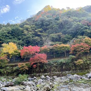秋の京都旅行、天気も気温も良かったです。京都駅バス乗降場所での集合する場所が分かりづらく、バスの乗車時間に遅れて来た人も居ました。各ツァ-事に集まれる所、行き先が一目で分かりやすくされていたら、時間に遅れる事なくバスは定刻で発車出来たと思います!御年配の方や外国からの方などは、迷ってしまうと思います!改善お願いします!トロッコ列車リッチ号は風を直接受けながら紅葉の山を眺めて、下には川を下る船に手を振りながらと、あっという間の素敵な時間でした。その後バスで保津川下りまで移動、船に乗り船頭さん3名で舵を取り、時折り急な流れの場所では、川水が跳ね上がってきたりと、スリルあり笑いありで、保津川下りを体験できて、とても楽しかったです。嵐山での散策も、紅葉の時期で人が多く出て居ましたが、食べ歩きをしながら、渡月橋嵐山を散策できました。添乗員のシュウさんは、面白い話し方で笑わせてくれました。この旅の中で1番面白かったかも!良い思いでになりました!ありがとうございました!またシユウさんの添乗で、参加したいです!シユウさんありがとう( ^_^)/~~~