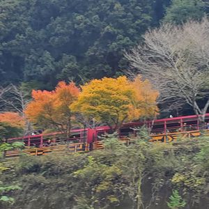 紅葉には1週間早かったかなって所です。ライトアップもイマイチで青空の中トロッコに乗った方が気持ちよかったなと思います