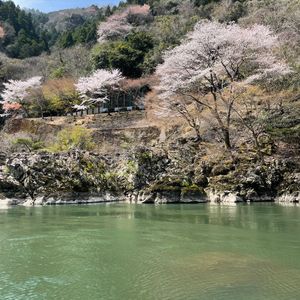 桜吹雪がキラキラして新緑も美しく申し分なし。トロッコ列車はレトロ感たっぷり。保津川下りは水量が少なくてゆーっくり進み、時々くるスリルも船頭さんのトークと共に楽しめました。並ばずに乗れて、人数に合わせて席もガイドさんが案内してくださいました。