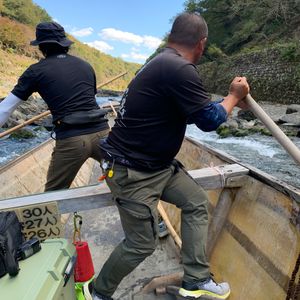 実際に乗った時は、船頭さん3人が前後交代しながら楽しく解説してくださり、安心感を与えてくれていました。ドンとくるところとか、急流・交流で危険なところも「技」で越えていくのを楽しく見せていただきました。その「技」の何かの違いだったのでしょうか、水の怖さ、自然の怖さを感じた事件でした。伝統的なものですので、「技」をしっかり受け継いで、あの素晴らしい自然をまた安心して見に行きたいと思います。四季によって景色が変わるのは素晴らしいと思います。