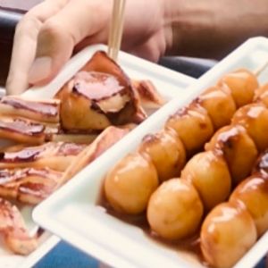 嵐山に近づいた時に売店船と並航してみたらし団子やイカ焼を求めてつまみながらの終盤に盛り上がりました。
