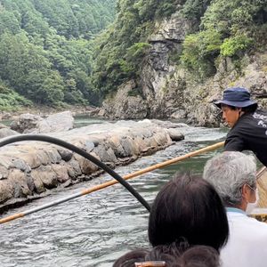 船頭さんたち3人の掛け合いも面白く、勉強になり、景色も良く、時々現れる急流に歓声をあげながらあっという間の1時間40分でした!(流れの早い日は1時間弱でついてしまうそうです!)季節を変えてまたぜひ参加したいです!(紅葉の時期もきっと絶景のはず!)3歳の息子も、6歳の娘もどんどん変わる景色をとても楽しんでいました。