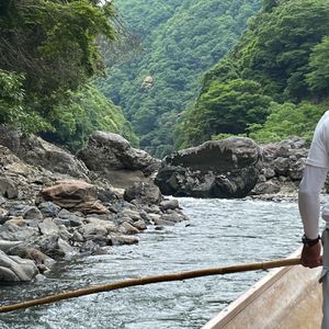 2時間近い川下り、堪能しました。参加者のモラルにもよるかもしれませんが、私の参加した回は定刻出発、嵐山着もほぼ予定通り。船頭さん3人は皆さんトークも説明も楽しくて感じのいい方ばかりでした。川の状態が穏やかだったので、何人かは流れの緩やかな場所で漕ぎ手の経験をさせてもらっていました。