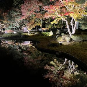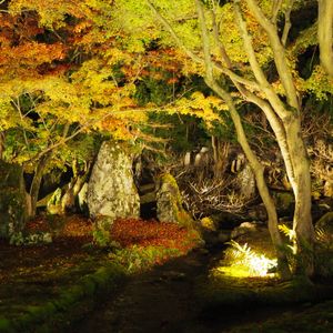 紅葉にはまだ早く、ライトアップしてありますが、ただの木を照らしているように見えます。
