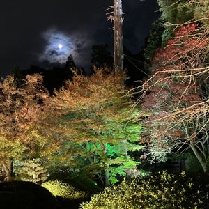 音楽と共にプロジェクトマッピングもあり、池に映る紅葉も凄く綺麗、月もちょうどまんまるで最高。