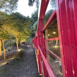駅に着くと意外に大きくてきれい。そして乗車。往路はまだ明かるく、ライトアップ感はないのですが、逆に川を楽しむにはいい時間です。復路になると一変して幻想的な空気。たくさんの光がないのがよかったです。